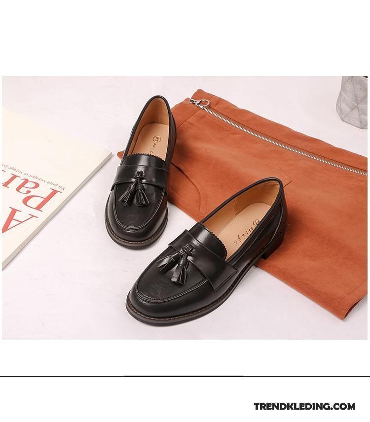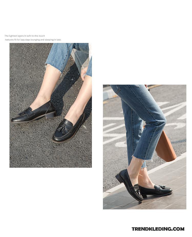 Mocassins Dames Vrouwen Leren Schoenen Pumps Student Voorjaar Brits Zwart