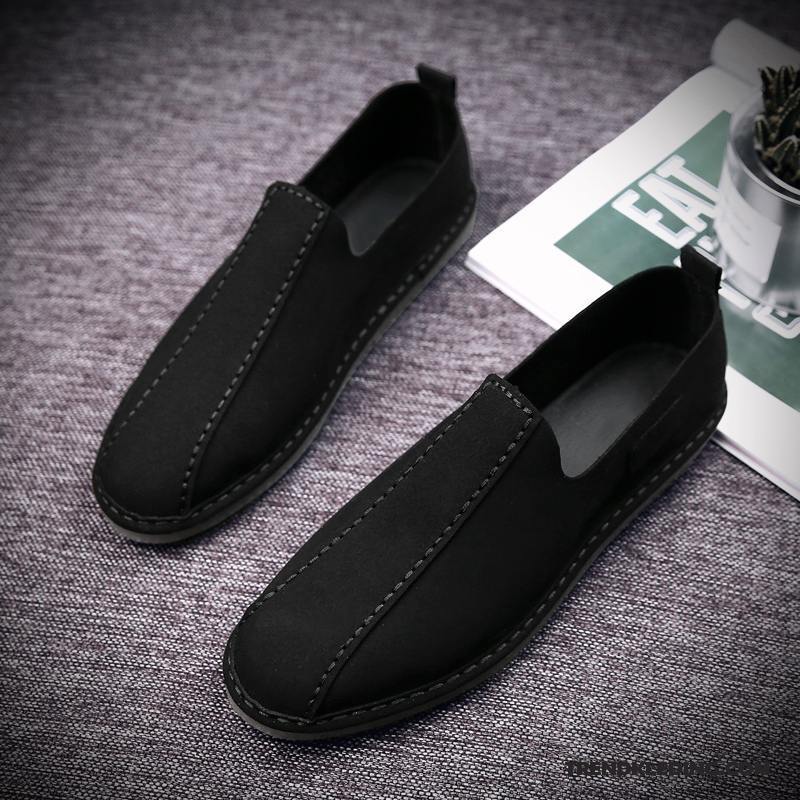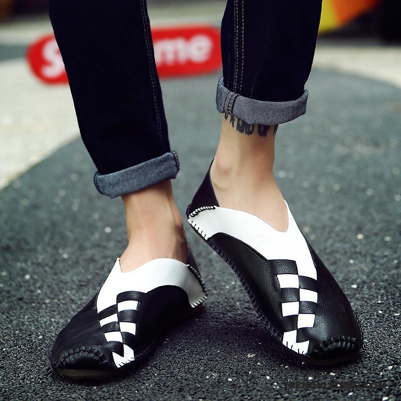 Mocassins Heren Schoenen Leren Schoenen Voorjaar Ademende Brits Echt Leer Zwart
