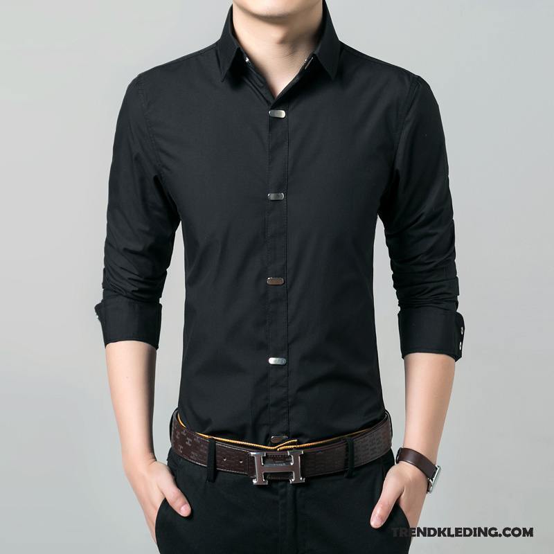 Overhemd Heren 2018 Mannelijk Slim Fit Mooi Lange Mouwen Casual Zwart
