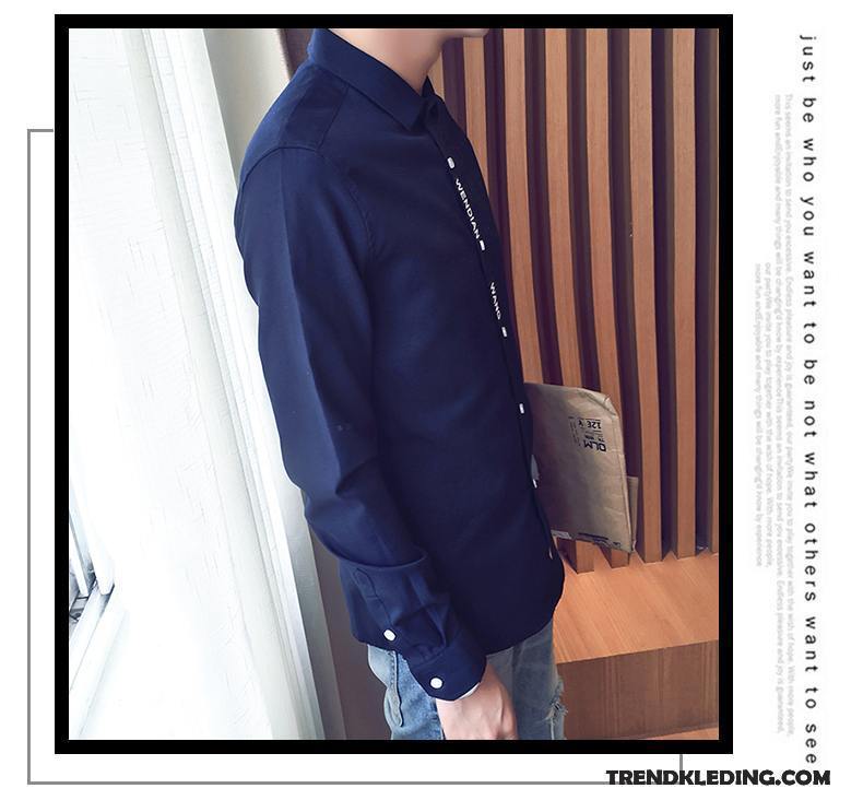 Overhemd Heren Lange Mouwen Trend Slim Fit Jeugd Winter Casual Wit