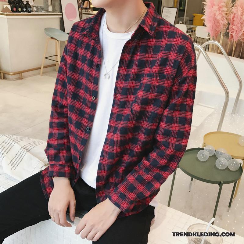 Overhemd Heren Geruit Jeugd Losse Jas Jasje Voorjaar Grijs