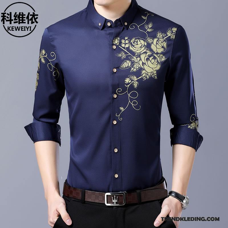 Overhemd Heren 2018 Mannelijk Slim Fit Mooi Lange Mouwen Casual Zwart