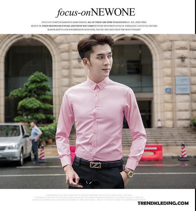 Overhemd Heren Trend Mannelijk Nieuw Casual Jeugd Lange Mouwen Rode Wijn