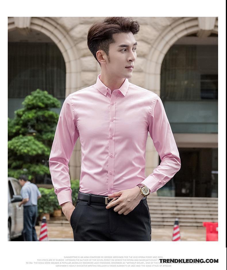 Overhemd Heren Mooi Voorjaar Bedrijf Nieuw Jeugd Casual Wit