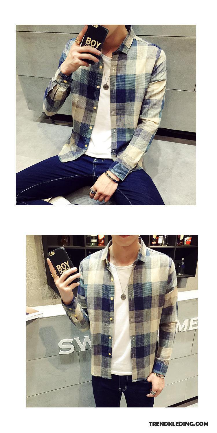 Overhemd Heren Onderhemd Trend Voorjaar Geruit Nieuw Jas Kleur