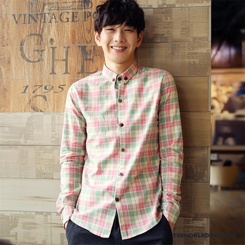 Overhemd Heren Onderhemd Trend Voorjaar Geruit Nieuw Jas Kleur