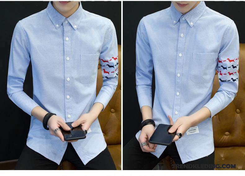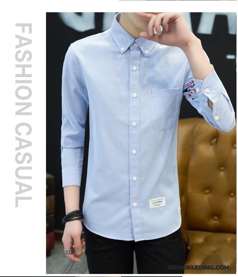 Overhemd Heren Trend Nieuw 2018 Student Jeugd Slim Fit Blauw