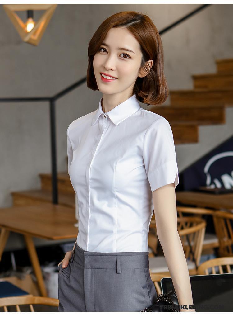 Overhemd Korte Mouw Dames Werkkleding Katoen Blouse Overhemd Geklede Nieuw Zomer Wit
