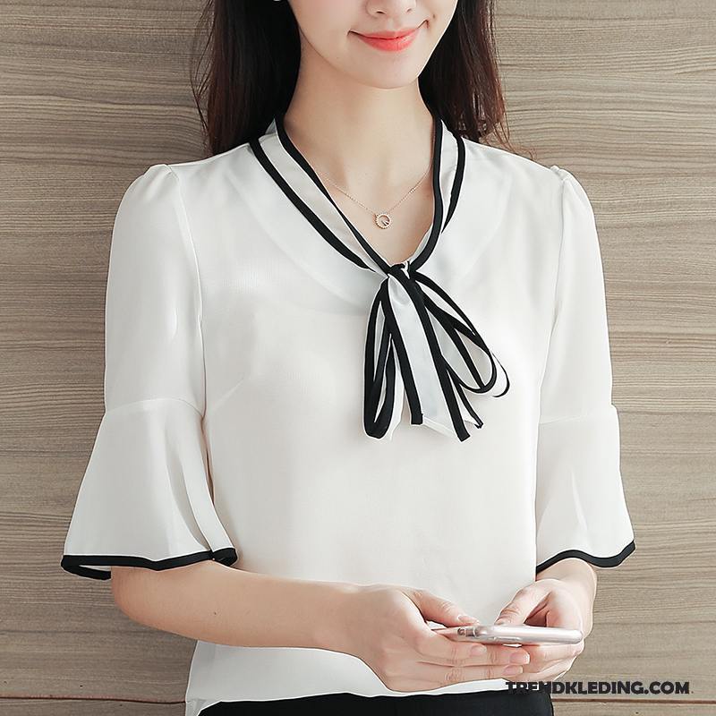 Overhemd Korte Mouw Dames Chiffon 2018 Voorjaar Blouse Overhemd Nieuw Jasje Wit