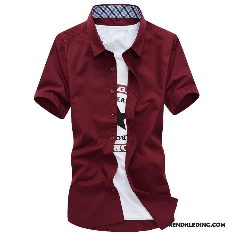 Overhemd Korte Mouw Heren Casual Jasje Slim Fit Grote Maten Mode Zomer Effen Kleur Rood Wit