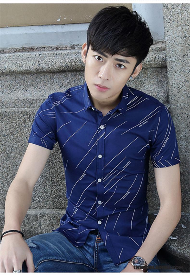 Overhemd Korte Mouw Heren Mode Zomer Student Jasje Jeugd Halve Mouw Donkerblauw Kleurverloop