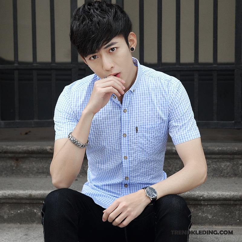 Overhemd Korte Mouw Heren Halve Mouw Zomer Geruit Mooi Mannelijk 2018 Wit