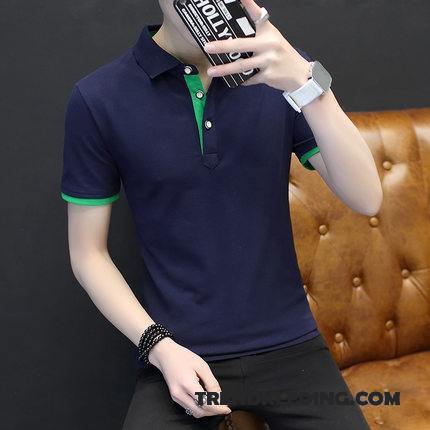 Overhemd Korte Mouw Heren Mode Zomer Student Jasje Jeugd Halve Mouw Donkerblauw Kleurverloop