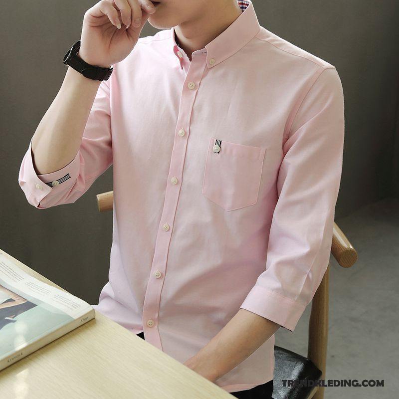 Overhemd Korte Mouw Heren Mannelijk Casual Zomer Trend Halve Mouw Slim Fit Roze