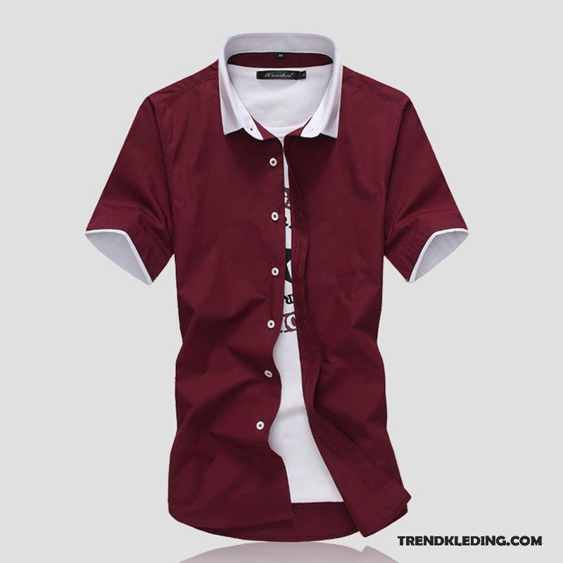 Overhemd Korte Mouw Heren Mannelijk Jeugd Zomer Slim Fit Overhemd Kort Mouw Trend Donkerblauw