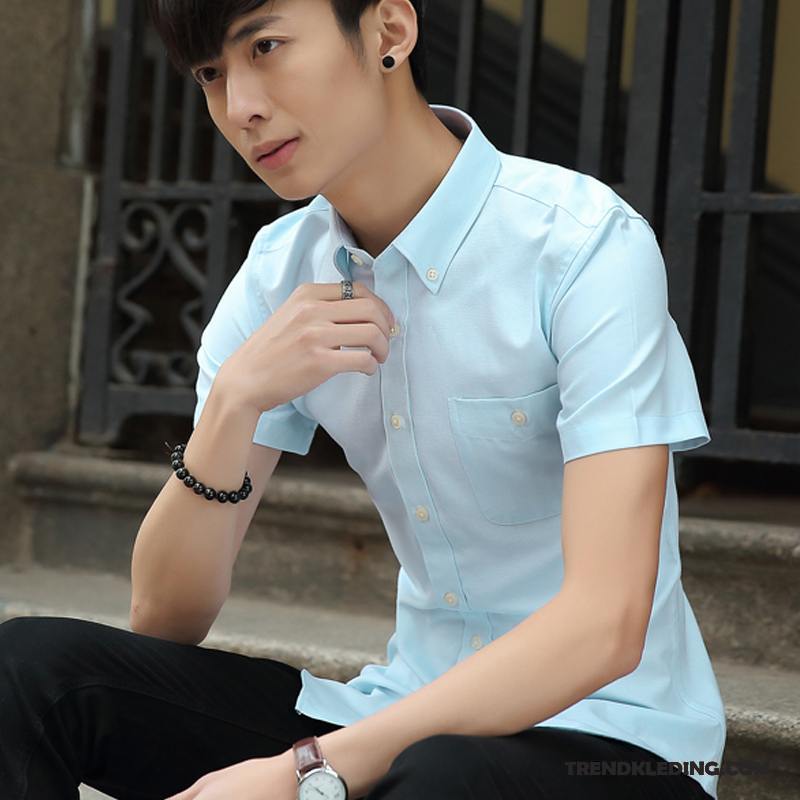 Overhemd Korte Mouw Heren Halve Mouw Trend Zomer Jeugd Mode Overhemd Kort Mouw Lichtblauw