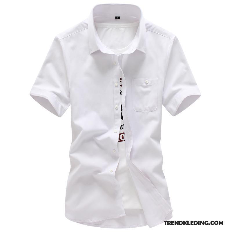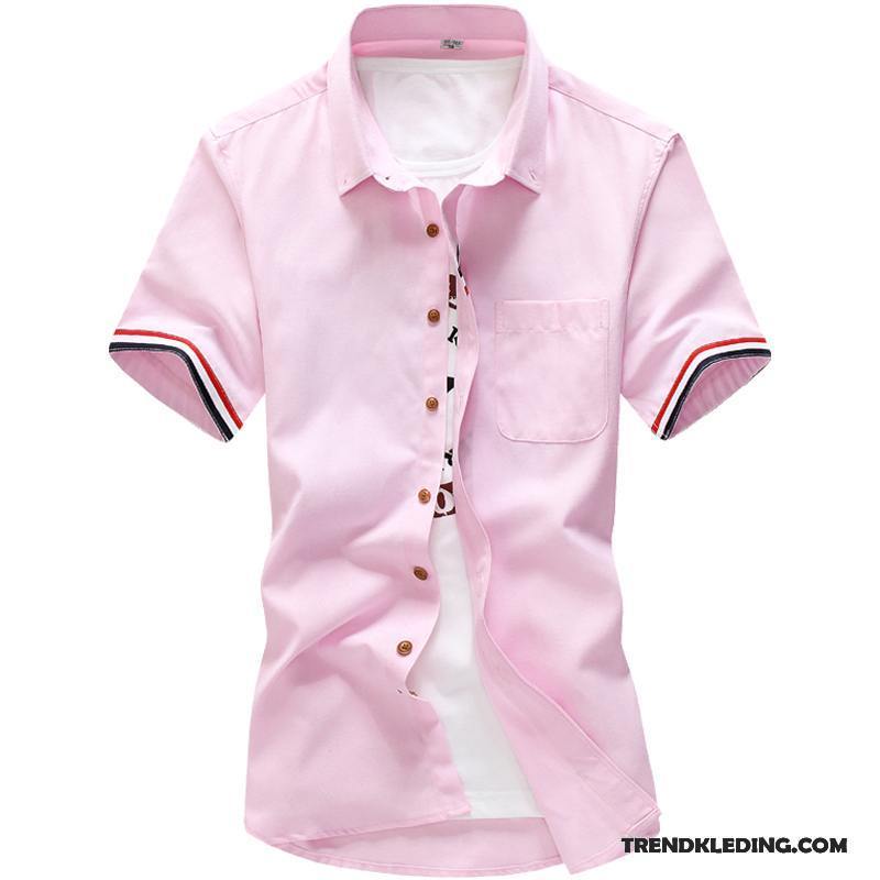 Overhemd Korte Mouw Heren Zomer Slim Fit Mannelijk Overhemd Kort Mouw Student Trend Roze Wit