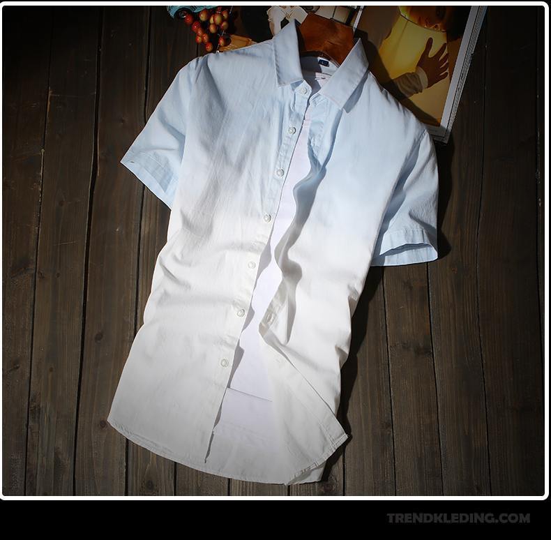 Overhemd Korte Mouw Heren Student Slim Fit Trend Mannelijk Jeugd Katoen Lichtblauw