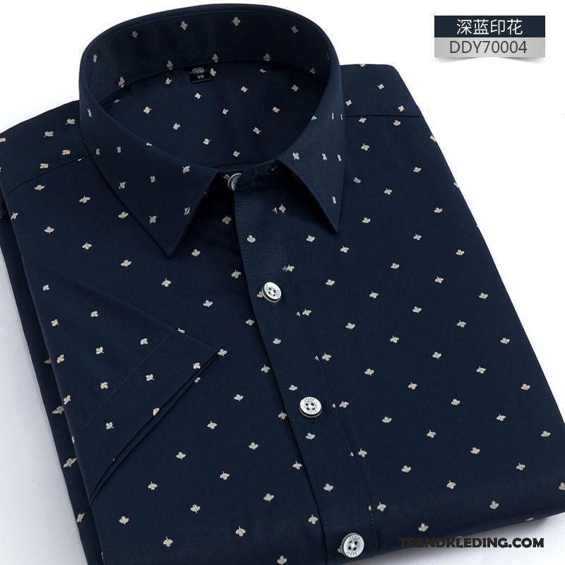 Overhemd Korte Mouw Heren Trend Bedrukken Overhemd Kort Mouw Slim Fit Jeugd Zomer Donkerblauw