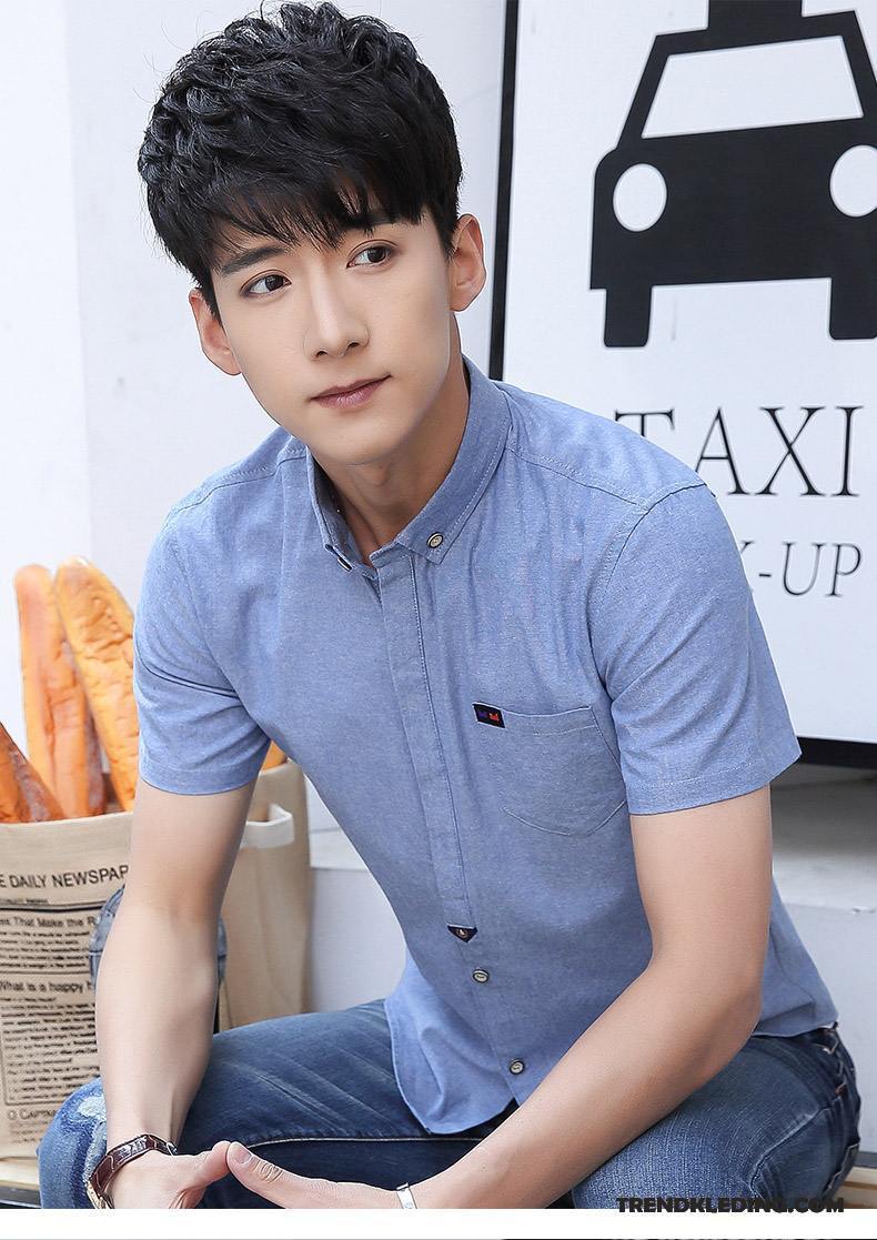 Overhemd Korte Mouw Heren Trend Zomer Slim Fit Jasje Overhemd Kort Mouw Casual Lichtblauw