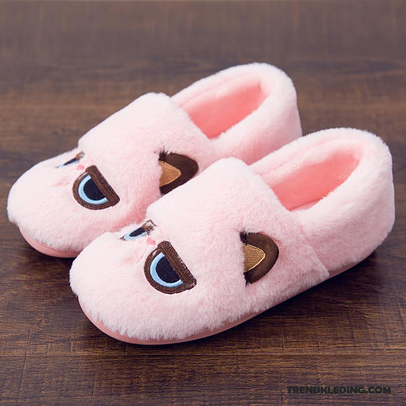Pantoffels Dames Leer Lovers Katoen Spotprent Schoenen Antislip Roze