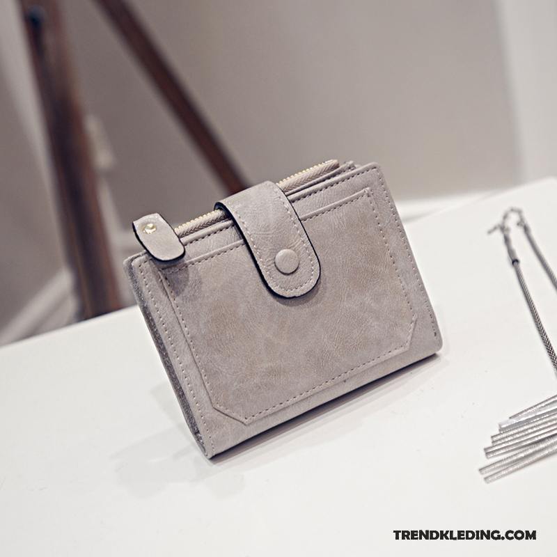 Portemonnee Dames Schrobben Vintage Eenvoudig Student Korte Grijs