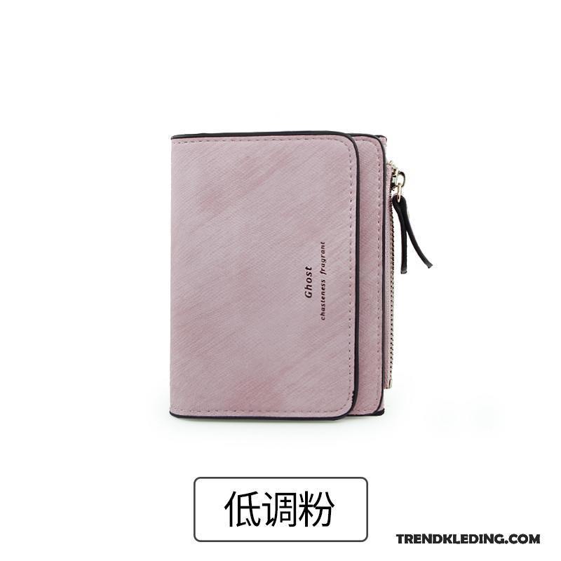 Portemonnee Dames Drie Gevouwen Student Tas Kaart Tas Lange Envelop Roze