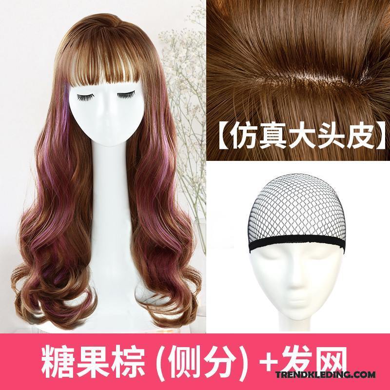 Pruik Dames Gezicht Herstellen Realistisch Grote Golf Zacht Rond Gezicht Krullend Haar Bruine
