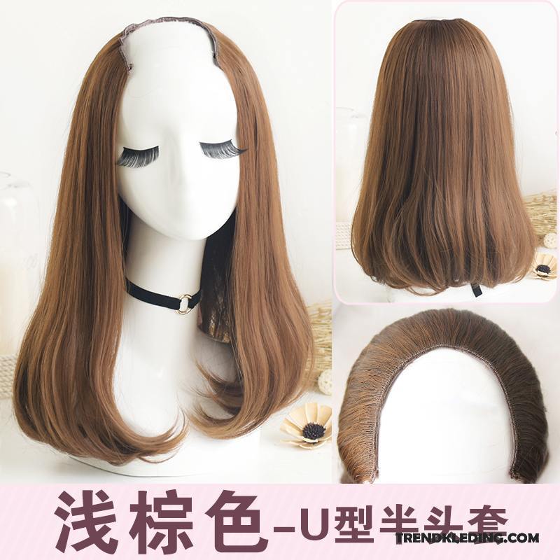 Pruik Dames Heimelijkheid Slijtage Grote Golf Lang Lang Haar Steil Haar Bruine Licht