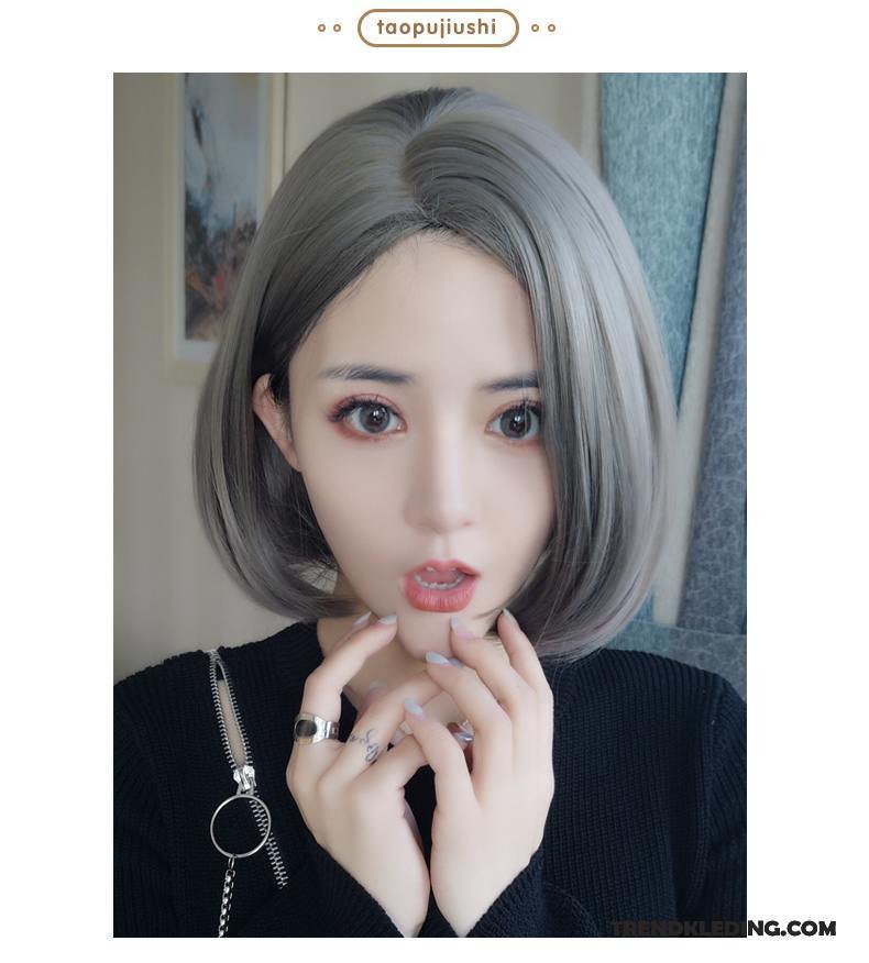 Pruik Dames Pony Hout Rechtbanken Realistisch Pluizig Linnen Grijs
