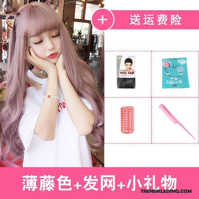 Pruik Dames Pony Gemiddelde Rond Gezicht Lang Grote Golf Lang Haar Rood Wit Zwart Gouden