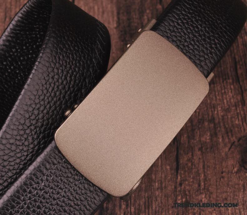 Riem Heren Automatische Aftrek Middelbare Leeftijd Echt Leer Trend Lederen Jeugd Zwart