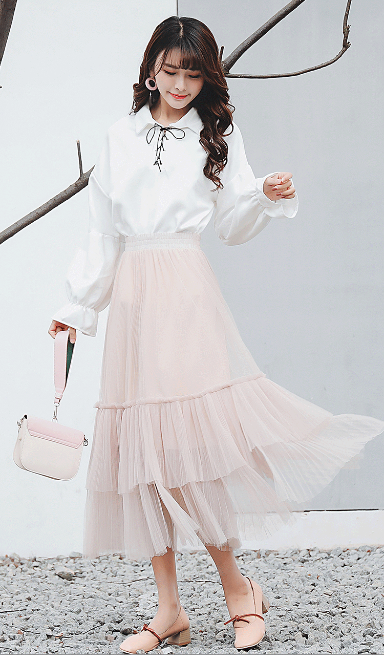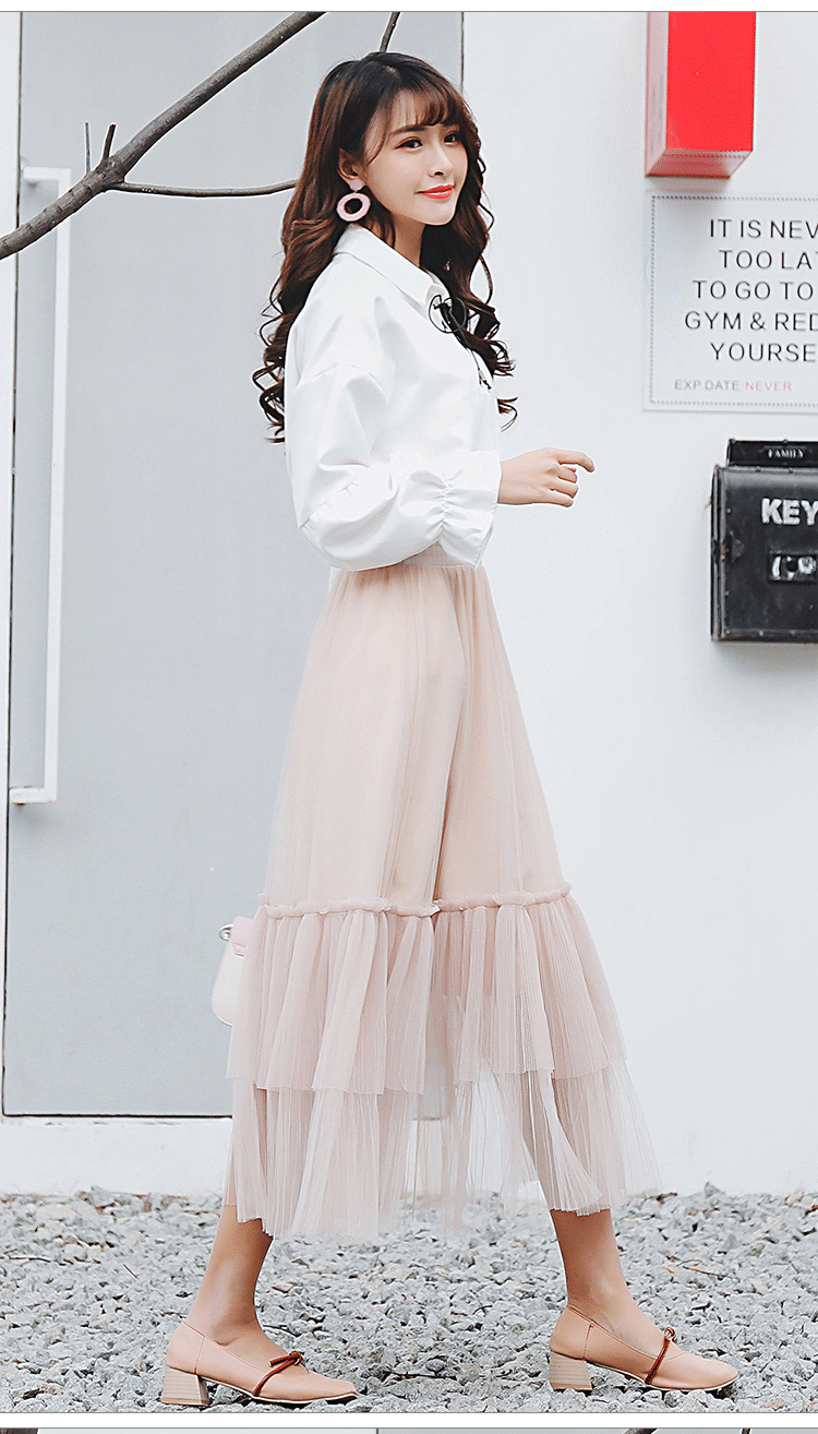 Rok Dames Gazen Herfst Lang Nieuw Hoge Taille Geplooide Wit