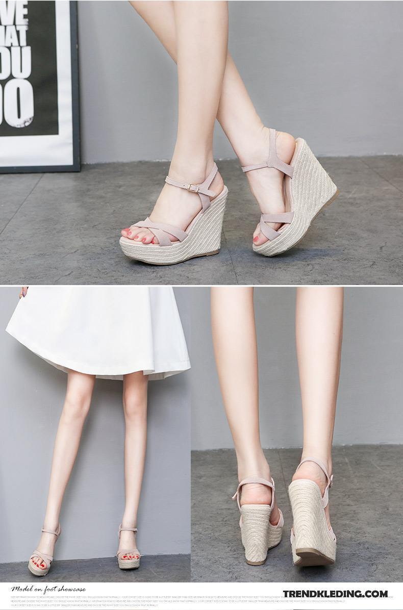 Sandalen Dames Vrouwen Hoge Hakken Schoenen Vintage Sleehak 2018 Grijs