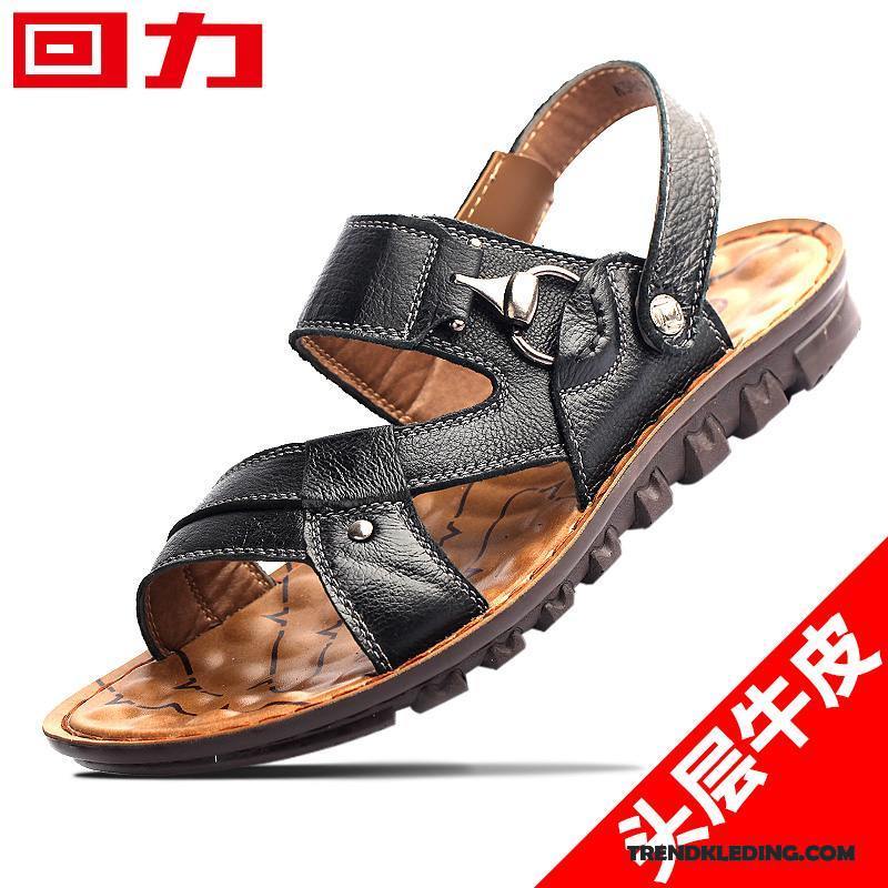 Sandalen Heren Mannen Leer Echt Leer Schoenen Trend Casual Zandkleur Zwart