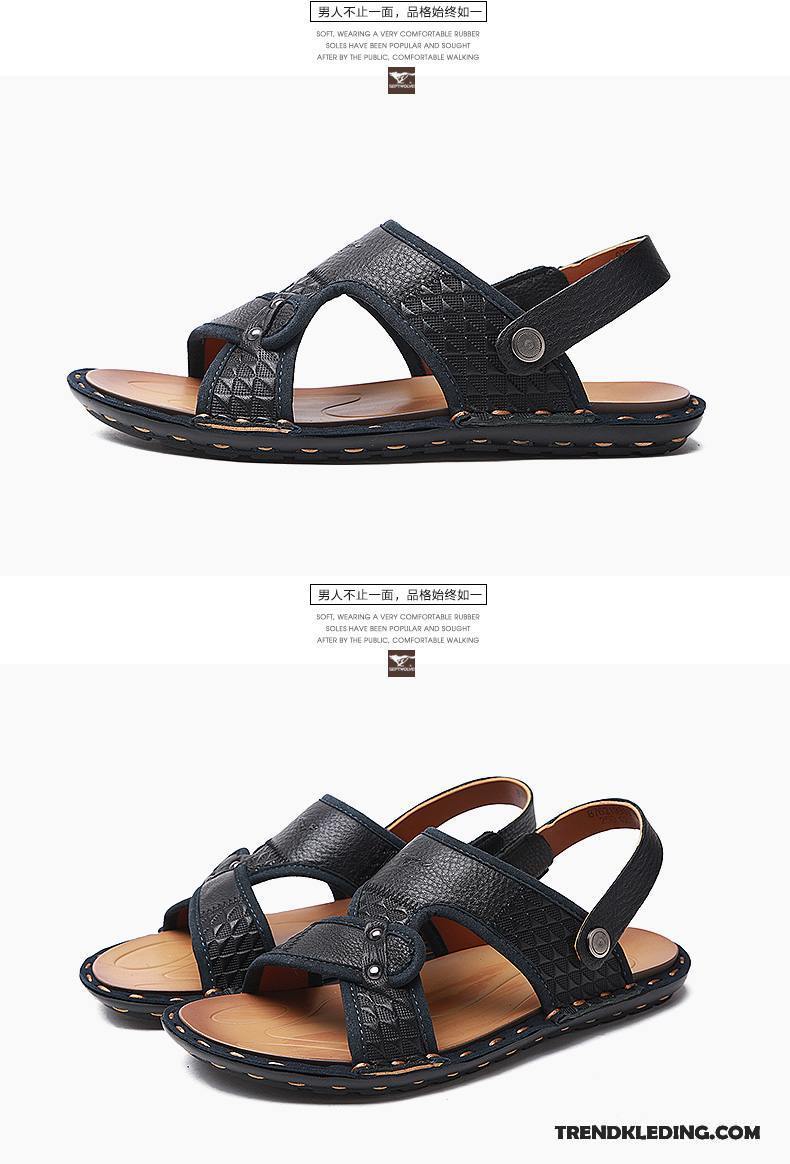 Sandalen Heren Mannen Leer Echt Leer Schoenen Trend Casual Zandkleur Zwart