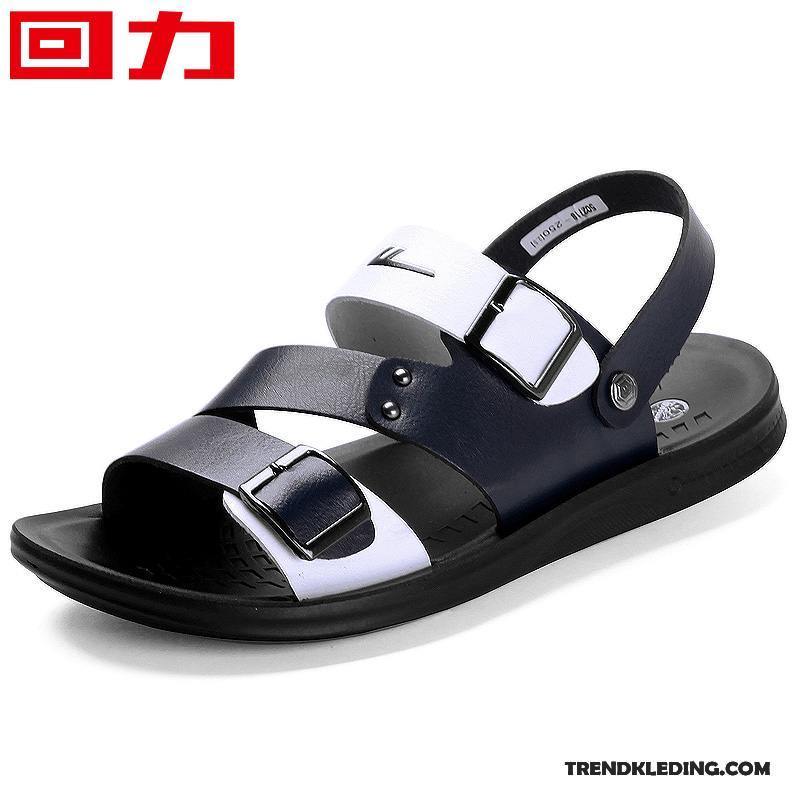 Sandalen Heren Echt Leer Outdoor Antislip Casual Sandaal Zomer Marineblauw Zandkleur