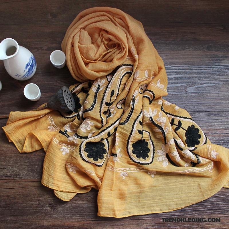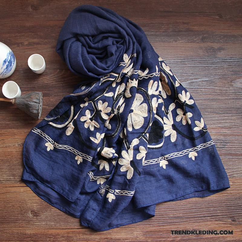 Sjaal Dames Etnische Katoen En Linnen Alle Wedstrijden 2018 Geborduurde Voorjaar Marineblauw Effen Kleur Goud