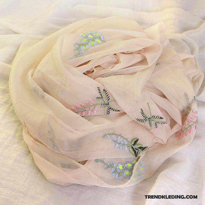 Sjaal Dames Decoratie Nieuw Werk Sjaals Lang Zijde Wit Beige