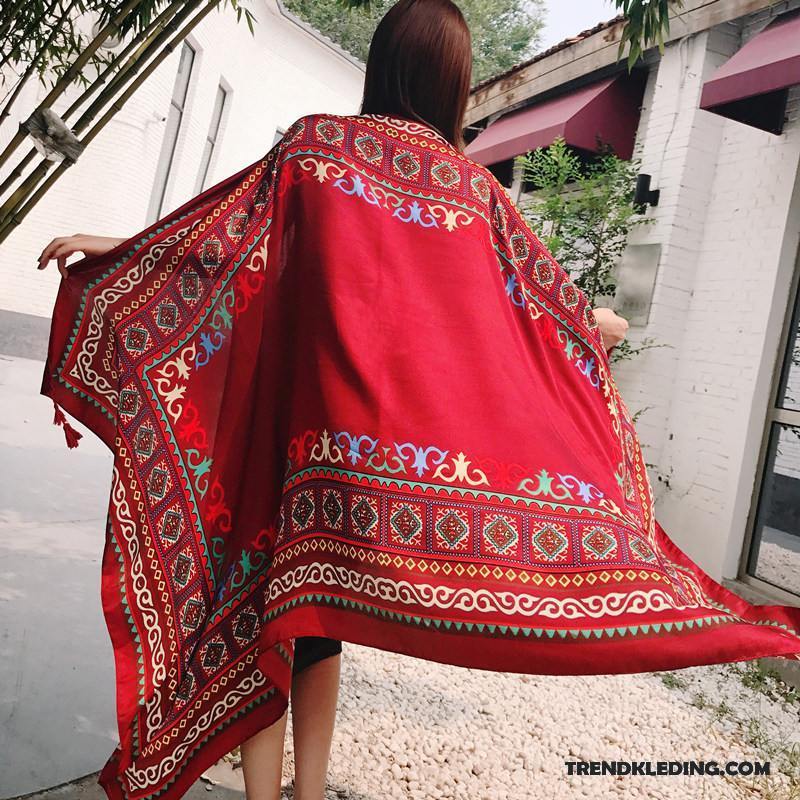 Sjaal Dames Verdikken Herfst Winter Geborduurde Etnische Dual Gebruik Rood