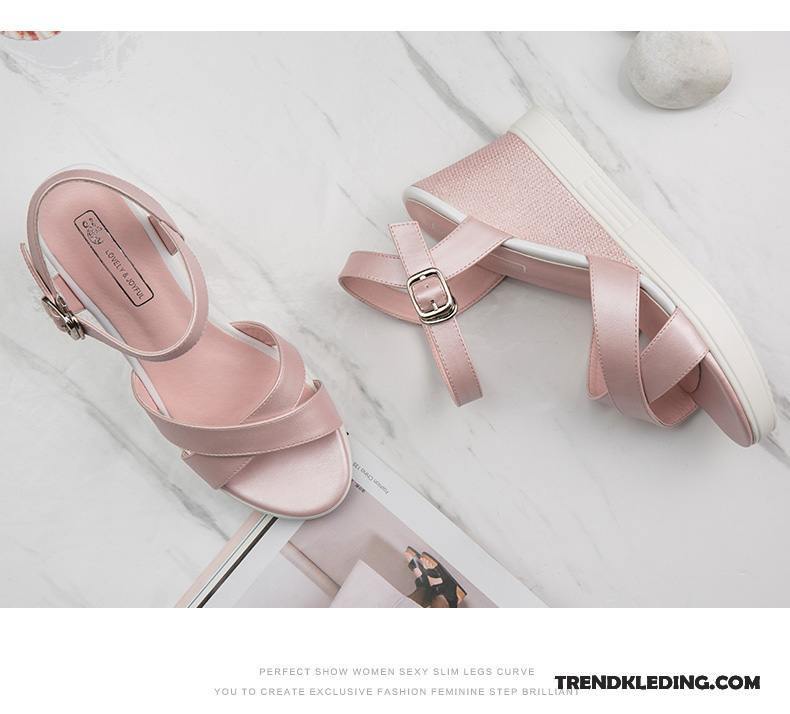 Sleehakken Dames Bandjes Sandaal Rome Comfortabele Vrouwen Schoenen Blauw Roze Wit
