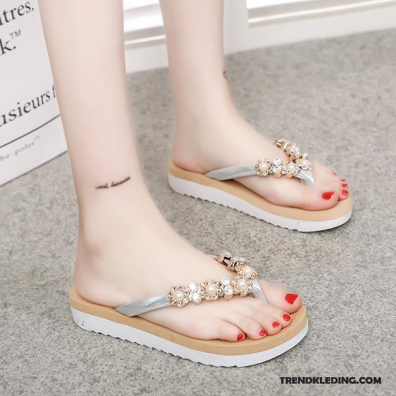 Slippers Dames Antislip Sandaal Eenvoudige Platte Zool Zomer Vrouwen Zandkleur Wit