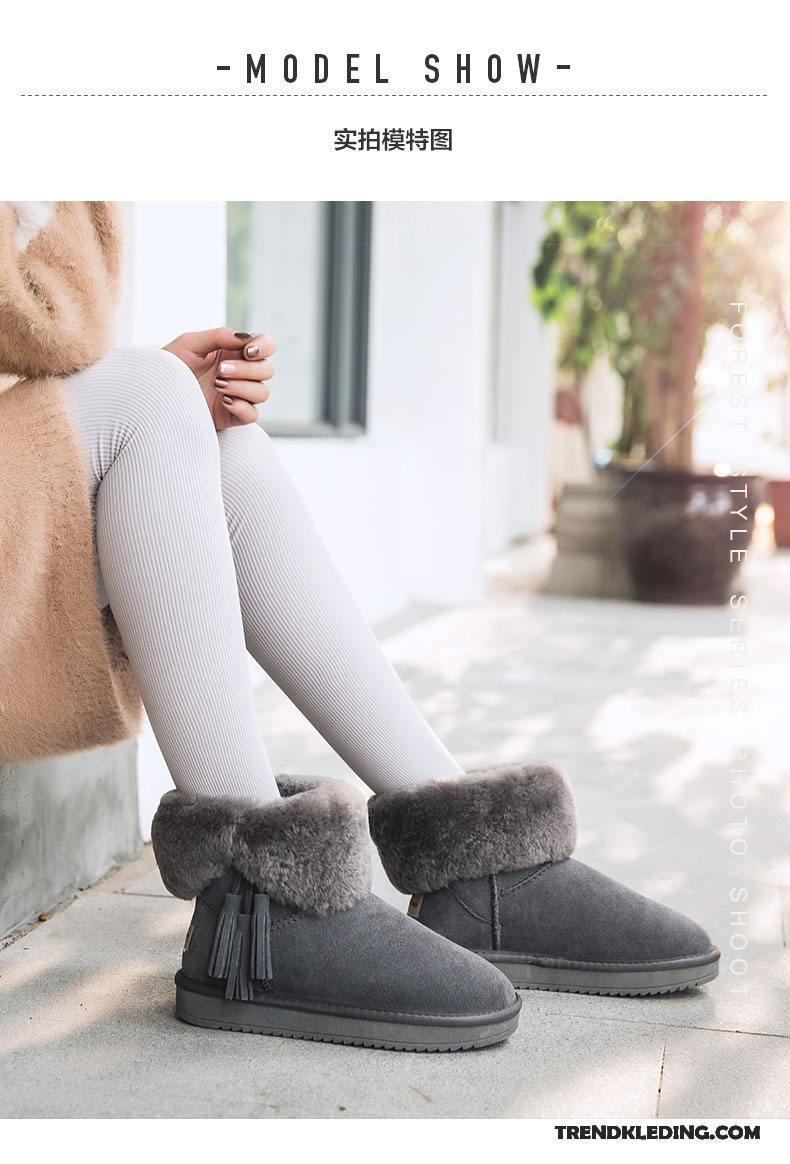Sneeuwlaarzen Dames Leer Winter Laars Plat Verdikken Schoenen Bruine