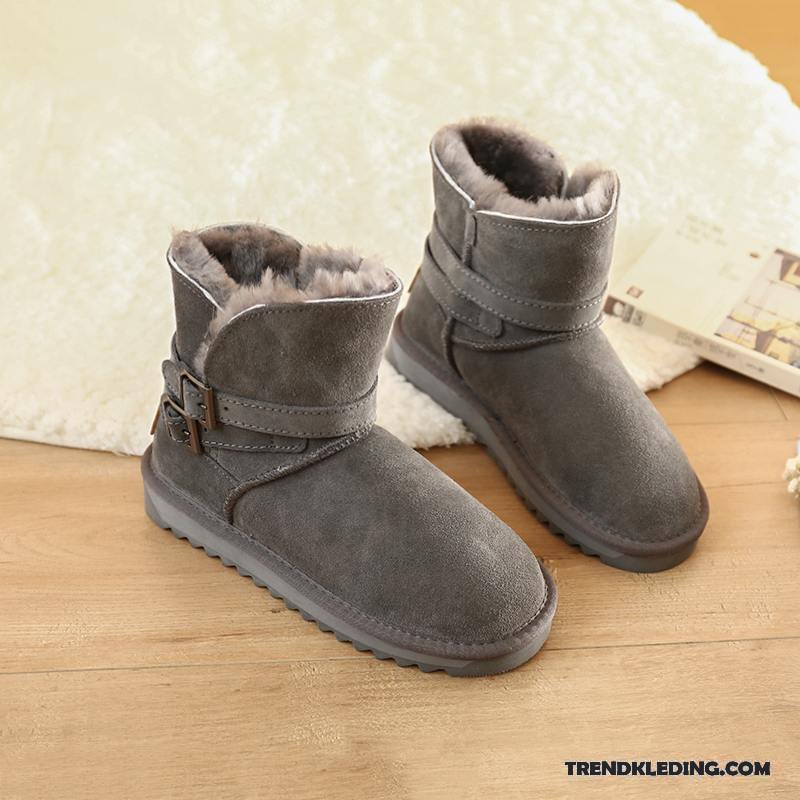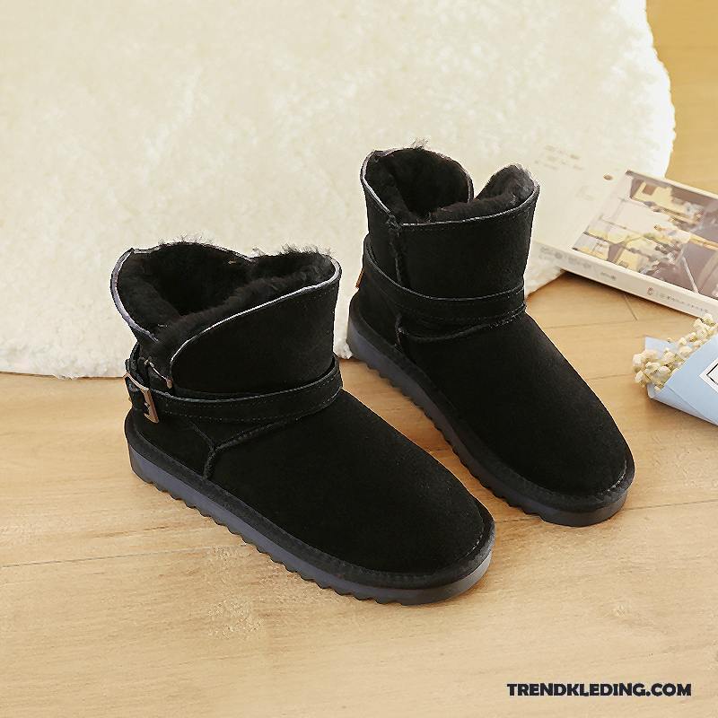 Sneeuwlaarzen Dames Sneeuw Laarzen Verdikken Katoen Echt Leer Korte Laarzen Pluche Zwart