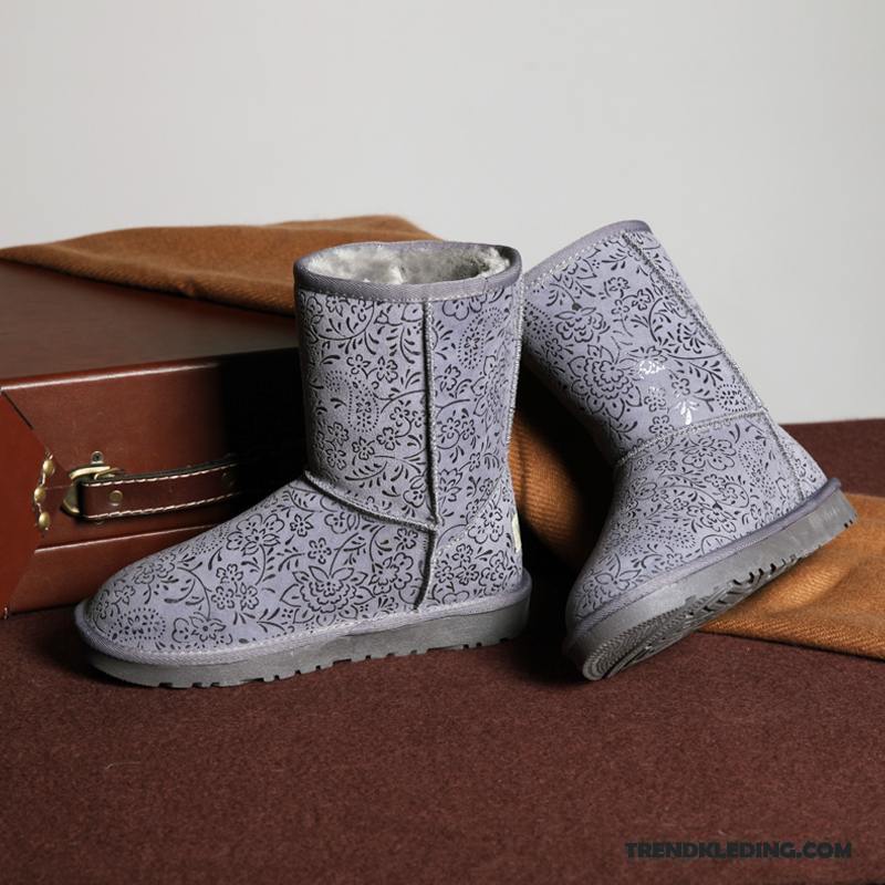 Sneeuwlaarzen Dames Sneeuw Laarzen Plat Vrouwen Winter Echt Leer Katoen Grijs