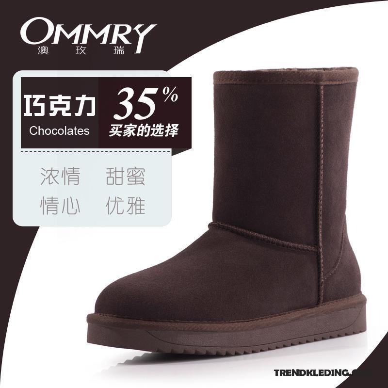 Sneeuwlaarzen Dames Warm Sneeuw Laarzen Vrouwen Schoenen Laars Leer Chocolade Kleur