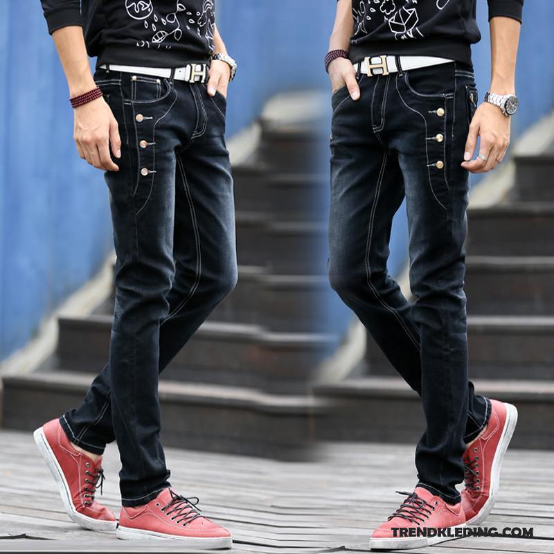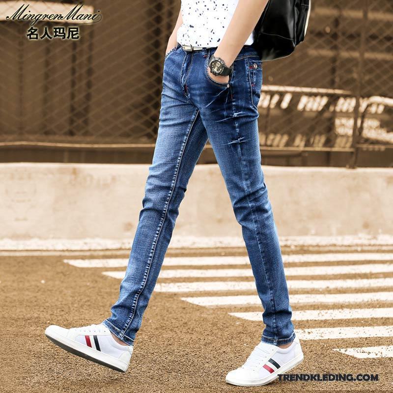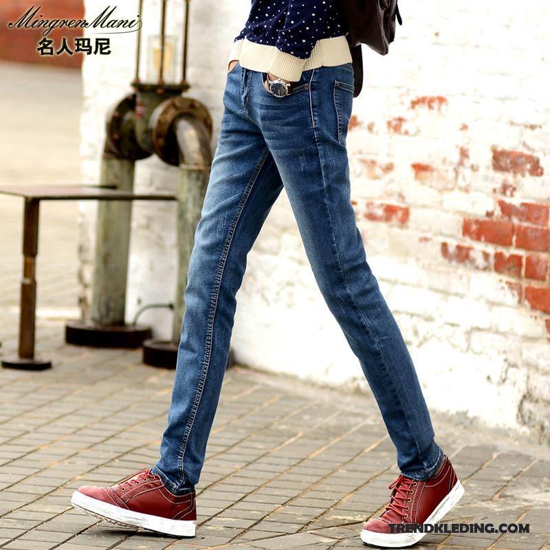 Spijkerbroek Heren Potlood Broek Mode Student Nieuw Trend Elastiek Blauw
