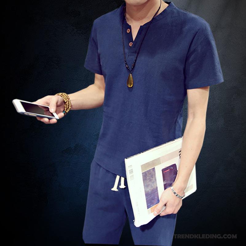 Sportkleding Heren Mannelijk Losse Zomer Trend Casual Pak Blauw