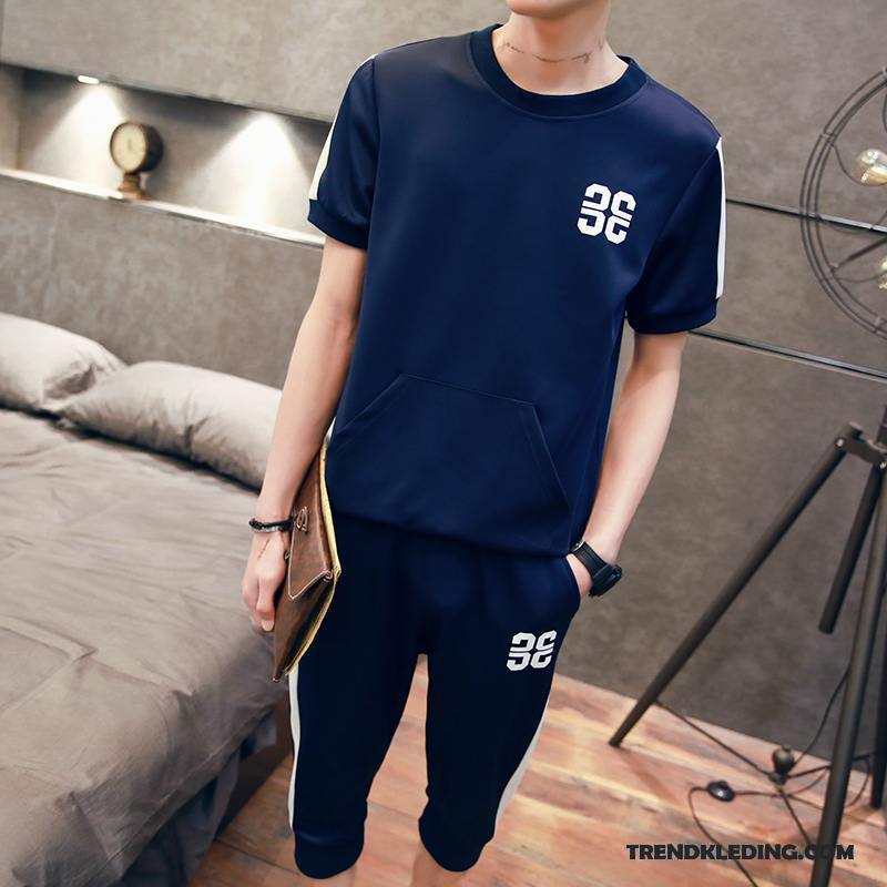 Sportkleding Heren Mannelijk Losse Zomer Trend Casual Pak Blauw