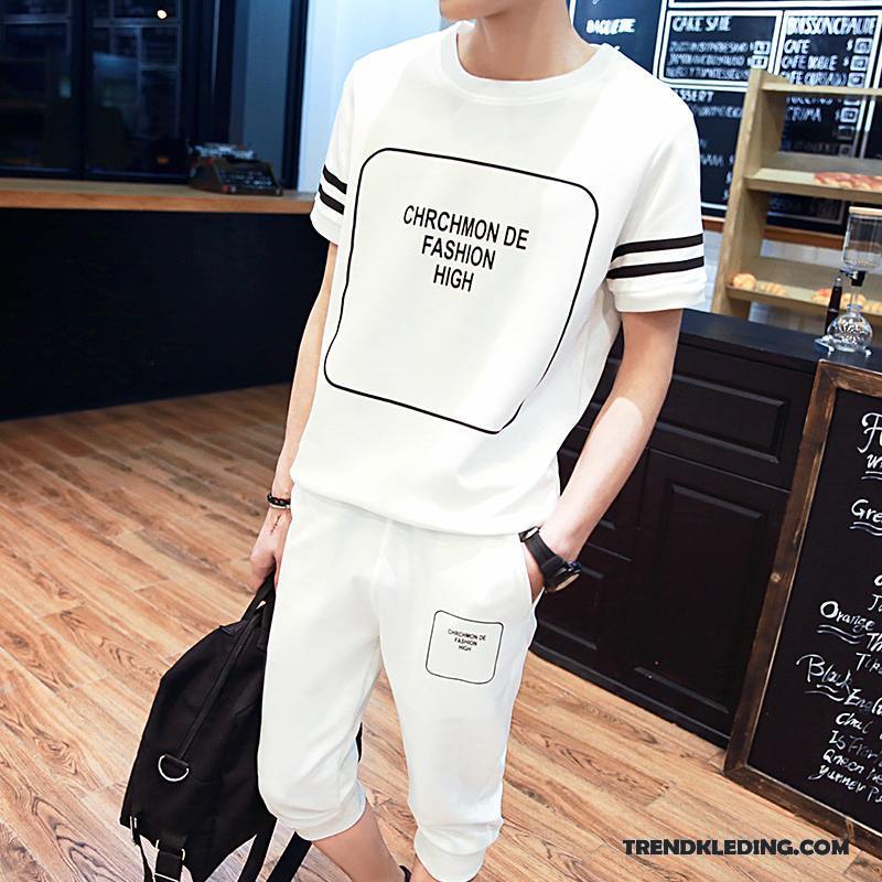 Sportkleding Heren Casual Pak Mannelijk Dunne Korte Mouw Zomer Wit